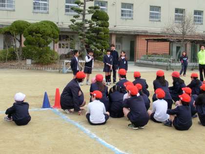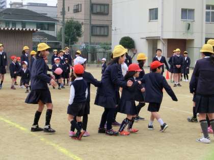 6年生が1年生を守る。・・・微笑ましい光景が運動場で見受けられました。