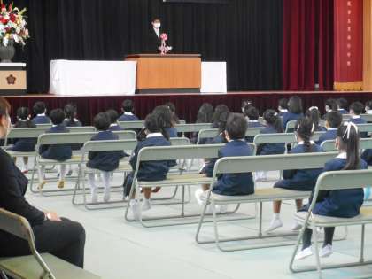 本日107名の1年生が苅田小学校に入学しました。感染症対策として在校生(2年生)の参加と来賓の方の参加はありませんでしたが、保護者、PTA、PTAOBのみなさまの多大なご協力をいただき、すばらしい式を行うことができました。2年生は在校生代表として、1年生にお祝いメッセージ動画を贈ってくれました。