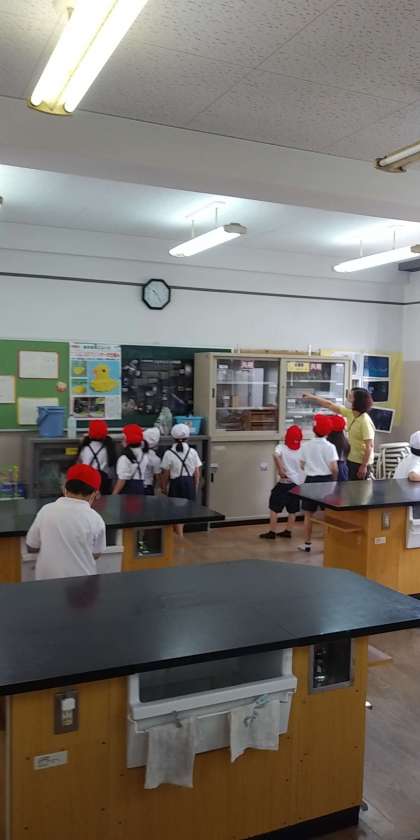先週1・2年生でペアのグループを作って学校たんけんを行いましたが、今週は1年生だけで学校たんけんを行いました。特別教室や校長室・職員室等をたんけんし、あらためてたくさんの発見がありました。