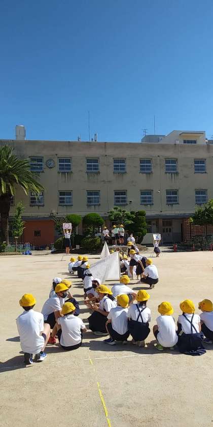 2年ぶりに運動場で児童集会を行いました。今年度は全校児童が運動場に一堂に会することを避け、1組【ocean】2組【flower】3組【star】の3グループに分かれ、グループごとに運動場と教室に分かれて行います。今日は1組【ocean】が運動場で、2組【flower】3組【star】は教室でそれぞれ楽しくゲームをすることができました。今年度は感染症対策を講じながら、たて割り班活動の充実を図っていきます。