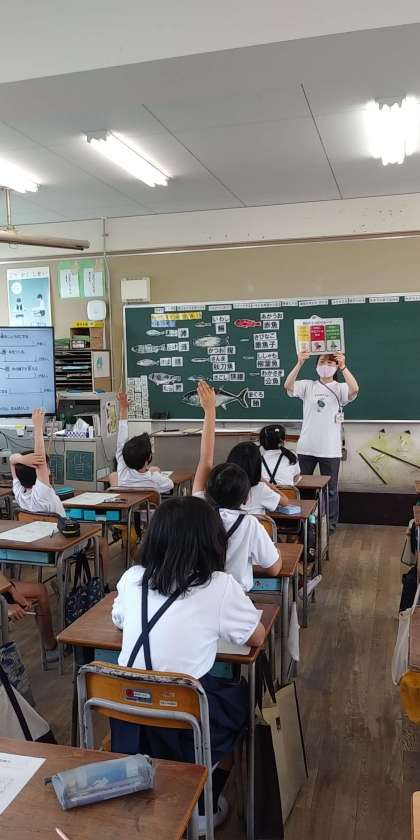 魚について興味・関心をもち、魚に含まれる栄養素や働きについて理解することができました。魚は学校給食で残食率の高い食品のひとつですが、授業を通して魚をすすんで食べようとする意欲が少しでも高まればと思います。