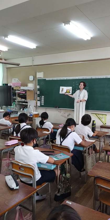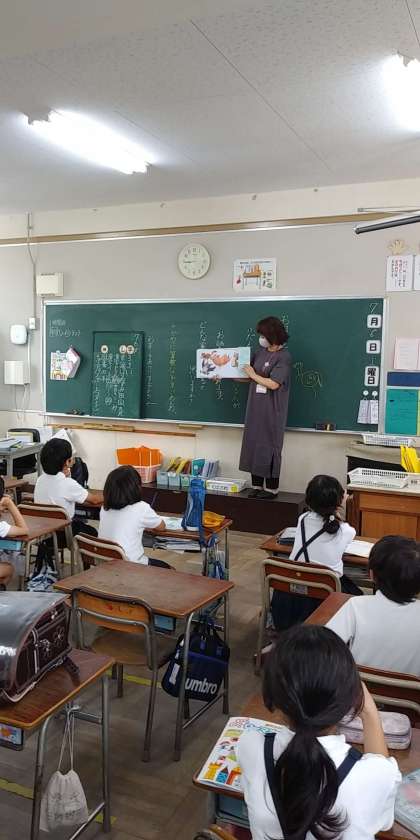 6月下旬より、読み聞かせ隊による毎週(火)朝の読み聞かせが再開しました。子どもたちの実態に合わせて、英語の絵本を含め様々な種類の絵本を選んで実施していただいています。