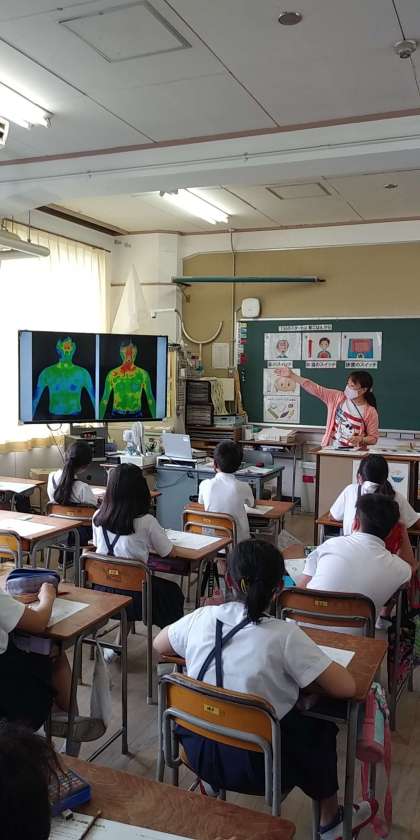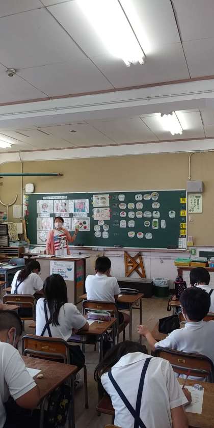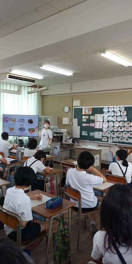 本校の栄養教諭が『1日のスタートは朝ごはんから』(5年)、『バランスのよい食事を考えよう』(6年)という題材で、各クラス1時間ずつ実施しました。