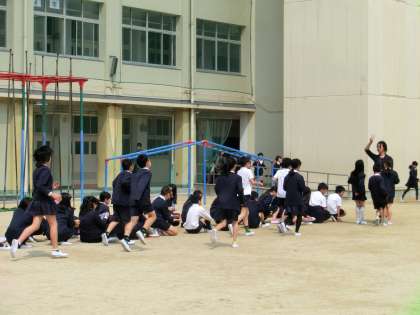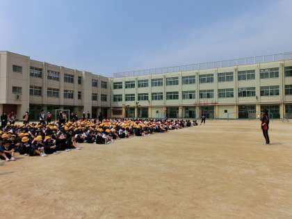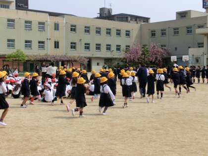 先生の指示に従って、静かに運動場に避難できました。