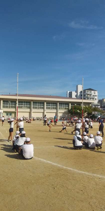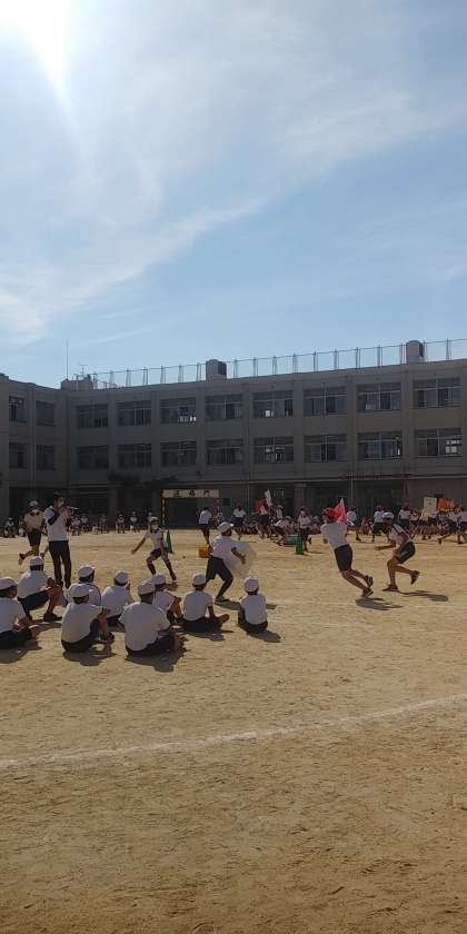 【リレー】や【団体競技】にも取り組みました。【とどけろ!ファイヤーボール(6年)】【うまい棒引き(5年)】と趣向を凝らした競技が続きました。