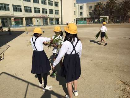 4月から大切に育ててきた稲の収穫の時期がきました。みんなで協力して収穫することができました。収穫した稲は2〜3週間乾燥させます。