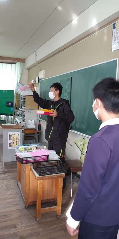 Teamsを活用して図書委員会・保健委員会の発表を行いました。図書委員会からは、活動の報告とクイズ、保健委員会からは、自分たちで作成した通販番組【ジャパネットかりた】で【換気棒】の紹介を行い、各クラスへの配送を行いました。これからの季節、【換気棒】を各教室の窓に置いて教室の換気ができればと思います。