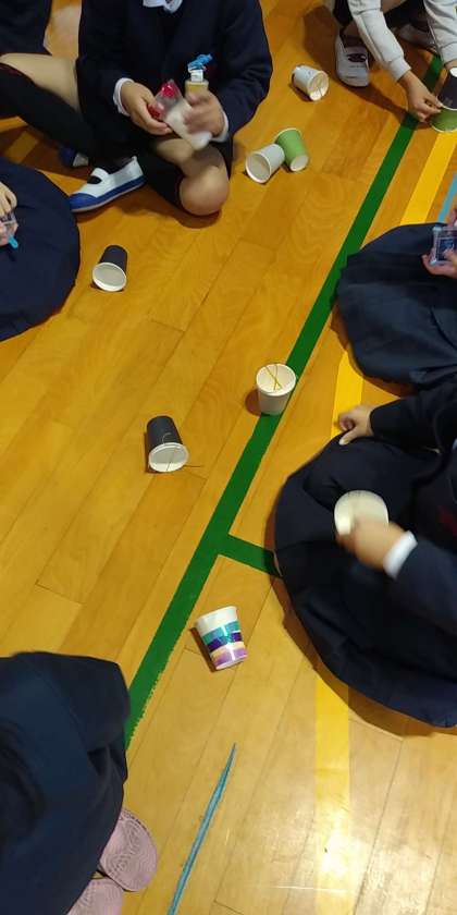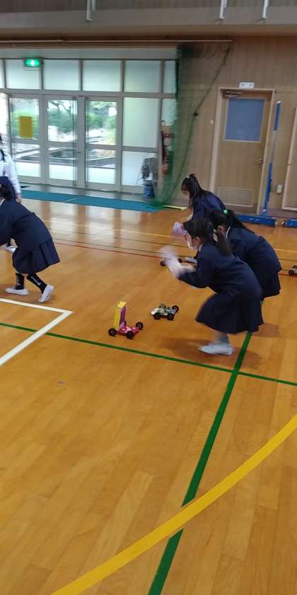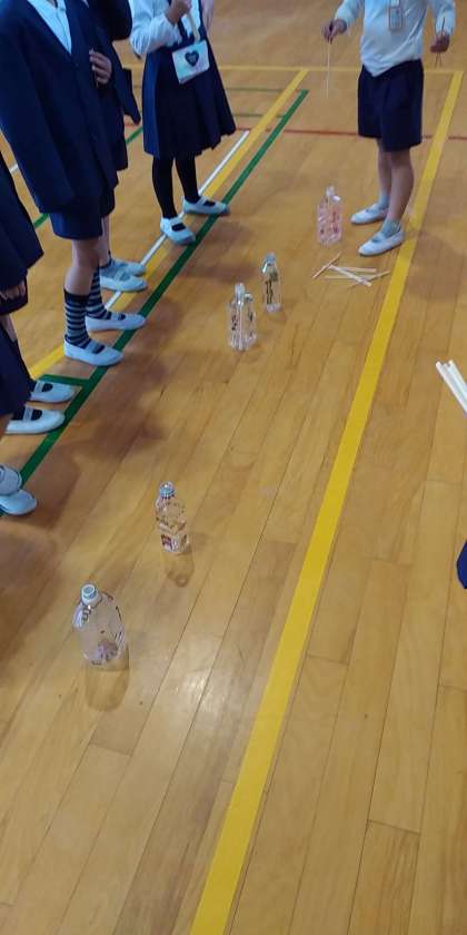 1・2年合同で【おもちゃランド】を実施しました。事前に2年生が生活科の時間に制作したいろいろなおもちゃを講堂に集め、1年生に遊び方を説明して遊んでもらいました。【ぴょんコップ】【トコトコ車】など、2年生3クラスともアイデア満載のおもちゃを準備し、楽しく1・2年生の交流ができました。