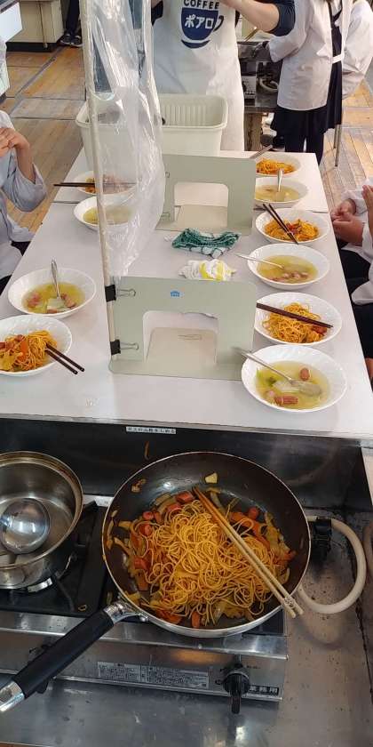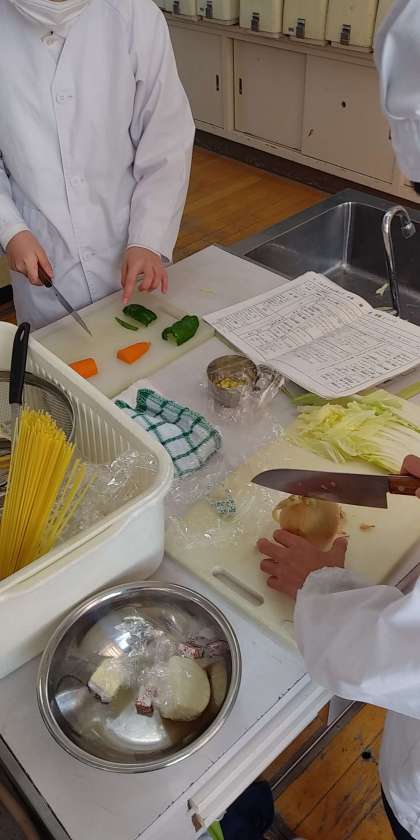5年生・6年生で調理実習を実施しました。感染症対策を行い、栄養教諭やその他の教職員もサポートしながら、班で協力して、5年生は【みそしる】【ごはん】、6年生は【ナポリタン】【コンソメスープ】をつくりました。5年生は、苅田小学校で育て、秋に収穫した【苅田米】も試食しました。どの班もおいしく調理することができました。