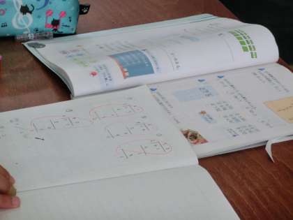4年生は、算数の時間にクラスを分割して、「筆算の練習」を