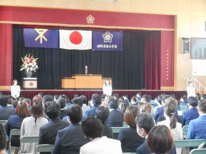 本日96名の1年生が苅田小学校に入学しました。感染症対策として在校生(2年生)の参加と来賓の方の参加はありませんでしたが、保護者、PTA、PTAOBのみなさまの多大なご協力をいただき、すばらしい式を行うことができました。2年生は在校生代表として、1年生にお祝いメッセージ動画を贈ってくれました。