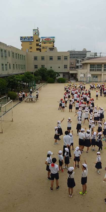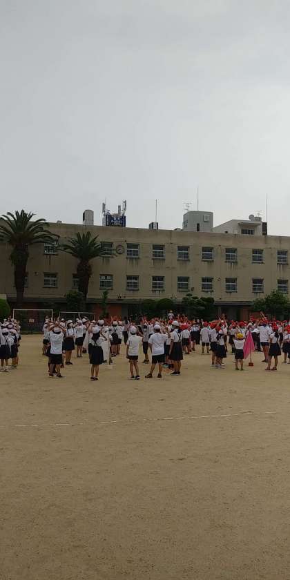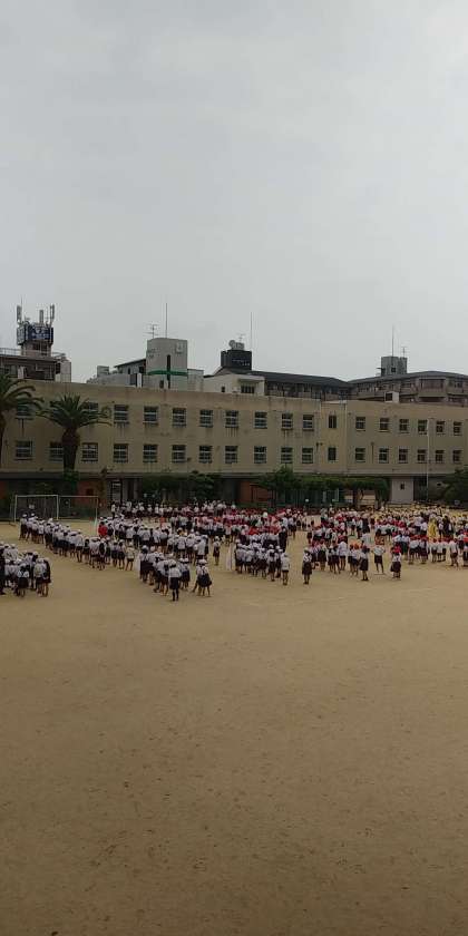 今年度はTeamsを活用して各教室で行う集会と、運動場に全校児童でたてわり班ごとに集まって行う集会を実施しています。今日は運動場で「〇×ゲーム」を行いました。1〜6年生のたてわり班で相談して回答します。どの班も全問正解をめざして楽しく取り組むことができました。
