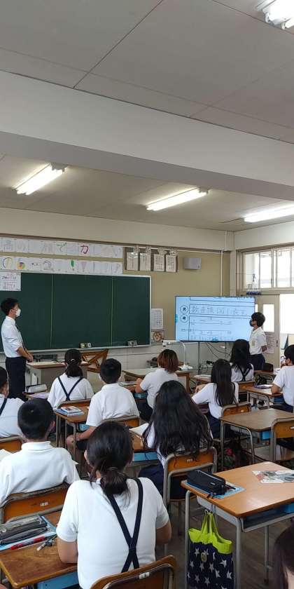 算数科で『どんな計算になるか考えよう』に取り組みました。これまでに学習してきた数直線図を活用し、かけ算になるのかわり算になるのかを判断し立式します。自分の考えをワークシートにまとめ、隣の席の児童と交流したり、全体に発表したりしながら、考えを深めることができました。今日の授業は研究授業として位置づけ、他の学年担当の先生も参観をしました。
