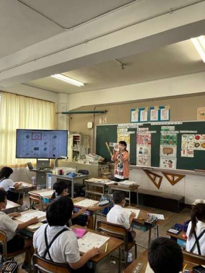 本校の栄養教諭が『たべもののはたらきをしろう』という題材で、各クラス1時間ずつ実施しました。授業を通して、食べ物は働きによって3つに分けられることを知り、自ら3つのグループの食べ物をそろえて、バランスよく食事をしようとする意欲が高まりました。