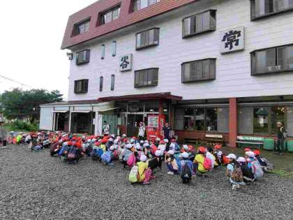 玄関前に集合
