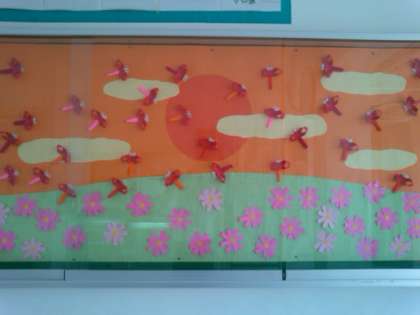 掲示板を変更しました。とんぼが元気に飛んでいます。夏の終わりを教えているのでは?