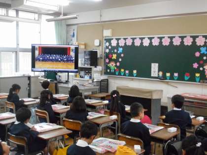 2年生は在校生代表として、1年生にお祝いメッセージ動画を贈ってくれました。