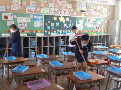 今は、給食を教室まで運んだり、1年生が下校後に教室の整頓や掃除をしてくれたりしています。