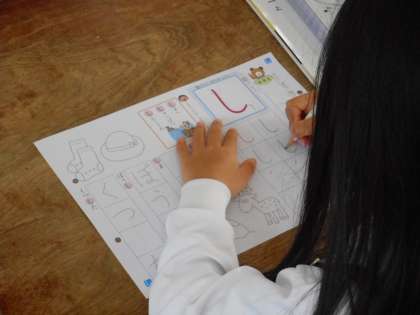ひらがなの学習も始まっています。今日は、「し」でした。