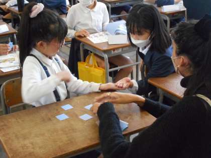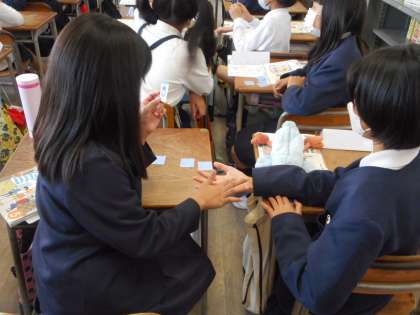 ネイティブの発音を聞いて、発音の練習をしたり、楽しく活動したりしていました。