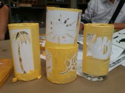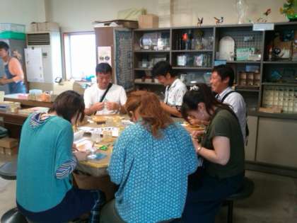滋賀県のガラス工房ぎやまんにてサンドブラスト体験しています。