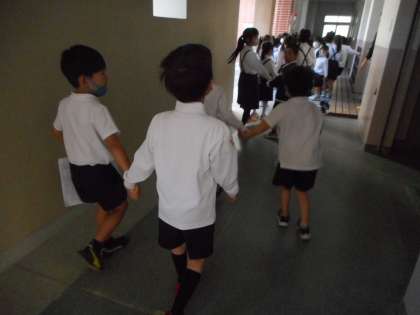 手をつないで、ペースを合わせながら歩いたり、各教室の説明をしたりしていました。