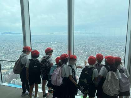 2回エレベーターに乗り、60階まで上がりました。大阪市の様子を上空から観察しています。