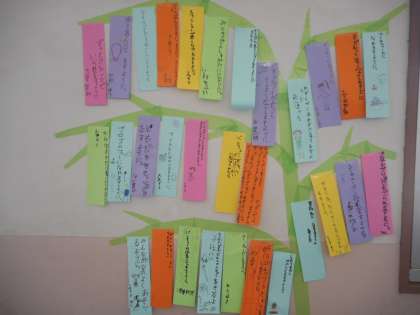 一人一人の願い事が書かれた短冊が笹竹につるされているように飾られています。