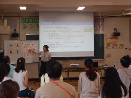 個々に出張をしての研修やオンラインによる研修に加え、校内で全員研修も行っています。