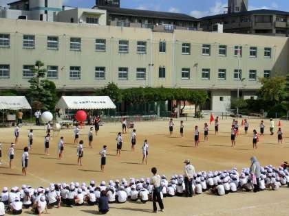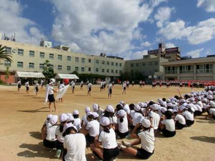 赤組・白組に分かれて、応援団の人は、大きな声を出して、