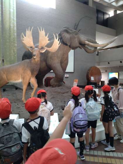 自然史博物館では、生命の進化や身近な自然の様子、生き物のくらしなどのテーマに別れた展示物をしっかり見学しました。直接触れる物もありました。友だちと楽しく見学しました。
