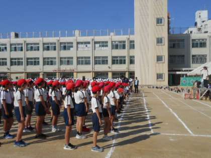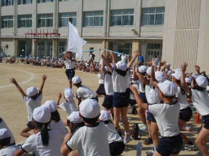 全校児童がそろって、開閉会式のリハーサルをしました。