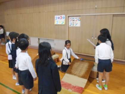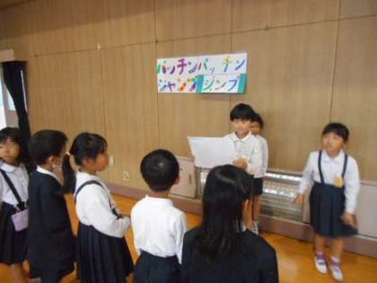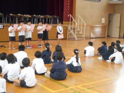 2年1組の児童は、1年1組の児童を招待。というように1組と1組、2組と2組、3組と3組で行いました。
