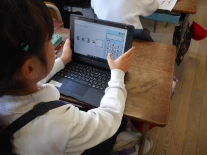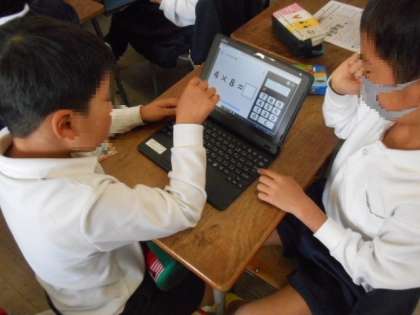 一人一台端末を使って九九の練習です。