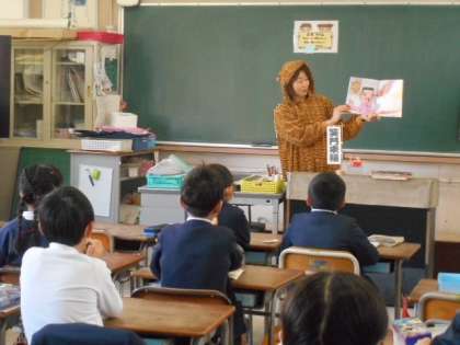 今日は、低学年のクラスに来ていただきました。みんな楽しそうに見入っていました。