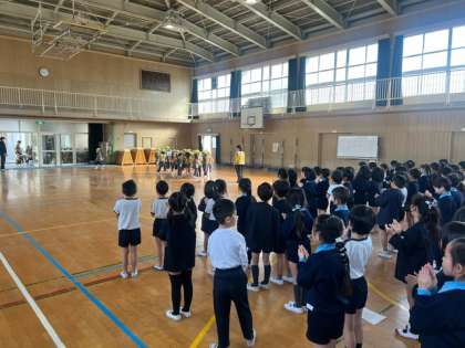 本日、ひまわり幼稚園の年長さんが小学校を訪れて、苅田小学校の1年生との交流会を行いました。
