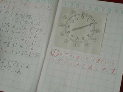 みんな真剣に考え、小さな一目もりを1分と読むことがわかると、様々な時間を読めるようになりました。