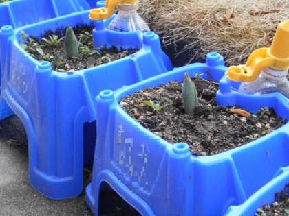 2学期に植えた球根から芽が出ています。