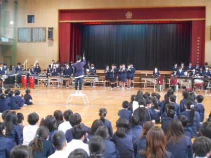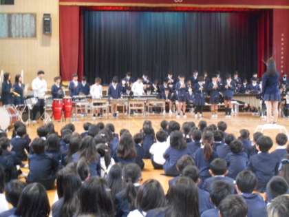 今週の児童集会は、6年生による合奏と合唱の発表でした。