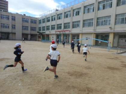 今日は、風も冷たく寒い日でしたが、3年生の子どもたちは、5分間の持久走をそれぞれのペースでがんばって走っていました。
