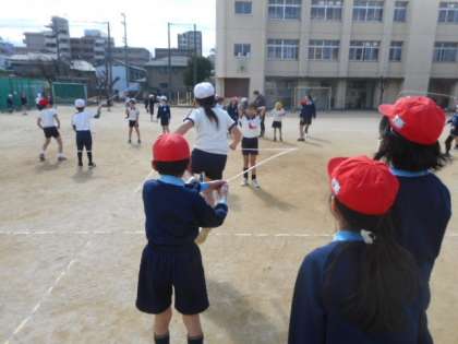 その後の大なわとびでは、グループでリズムを取ったり、声をかけあったりしていました。自分以外の周りの仲間のことを気にかけられるようになってきたことに、うれしく思いました。