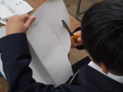 ここまでは、全員同じようにできるのですが、目や鼻、口、髪の毛、服などは一人一人自分で考えて作らなくてはなりません。適度な大きさになるように切らないといけないので、なかなか難しそうです。