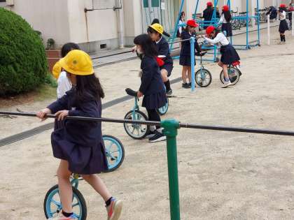 元気に外で遊ぶ子どもたち。