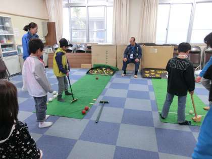 木工作品ができた人は、ひもひきゲームやスカッとボール