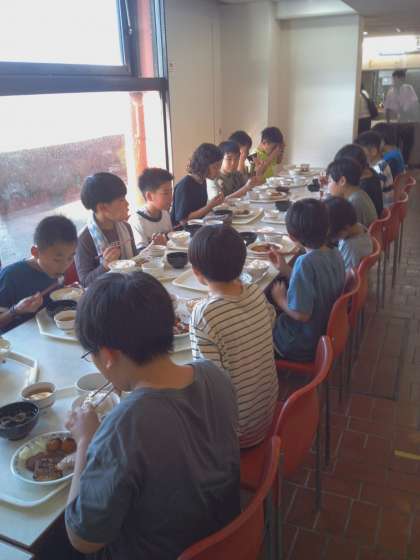カヌー体験で疲れ、お風呂に入ってからの夕食です。