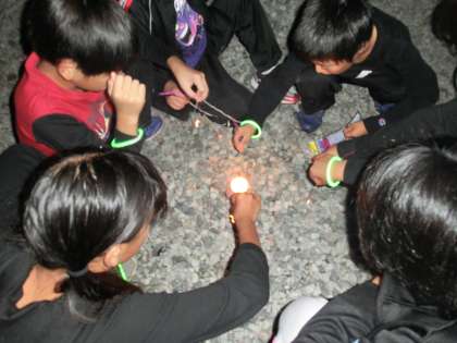 宿舎の前で花火をしました。
