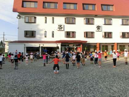 場所は宿舎の前でしました。
