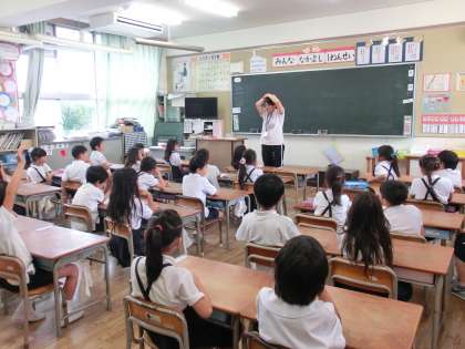 朝会で880万人の訓練の話を聞き、担任の先生から、再度、地震に備えての話をしました。