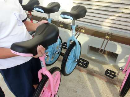 図書室にも一輪車ののり方の本も合わせて購入しています。