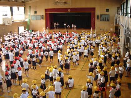 今日の児童集会は、集会委員会による楽しい集会でした。集会委員会の子どもたちが、ゲームの説明を舞台でわかりやすく、おもしろくしてくれるので場の雰囲気もなごみます。